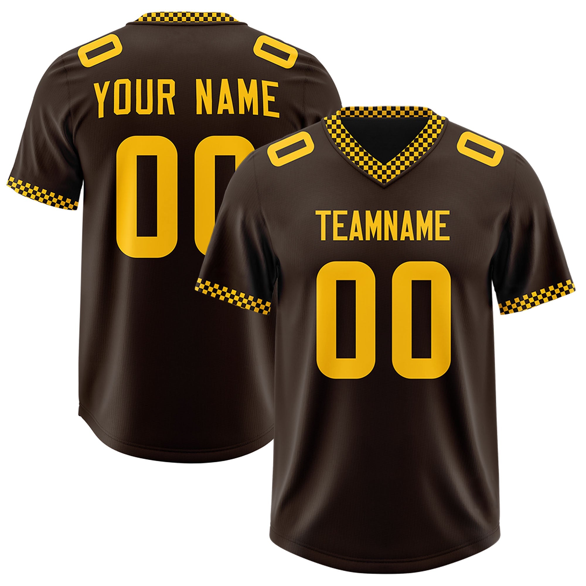 • Custom Brown Yellow Personalized Neckline Square Classic Authentic Football Jersey