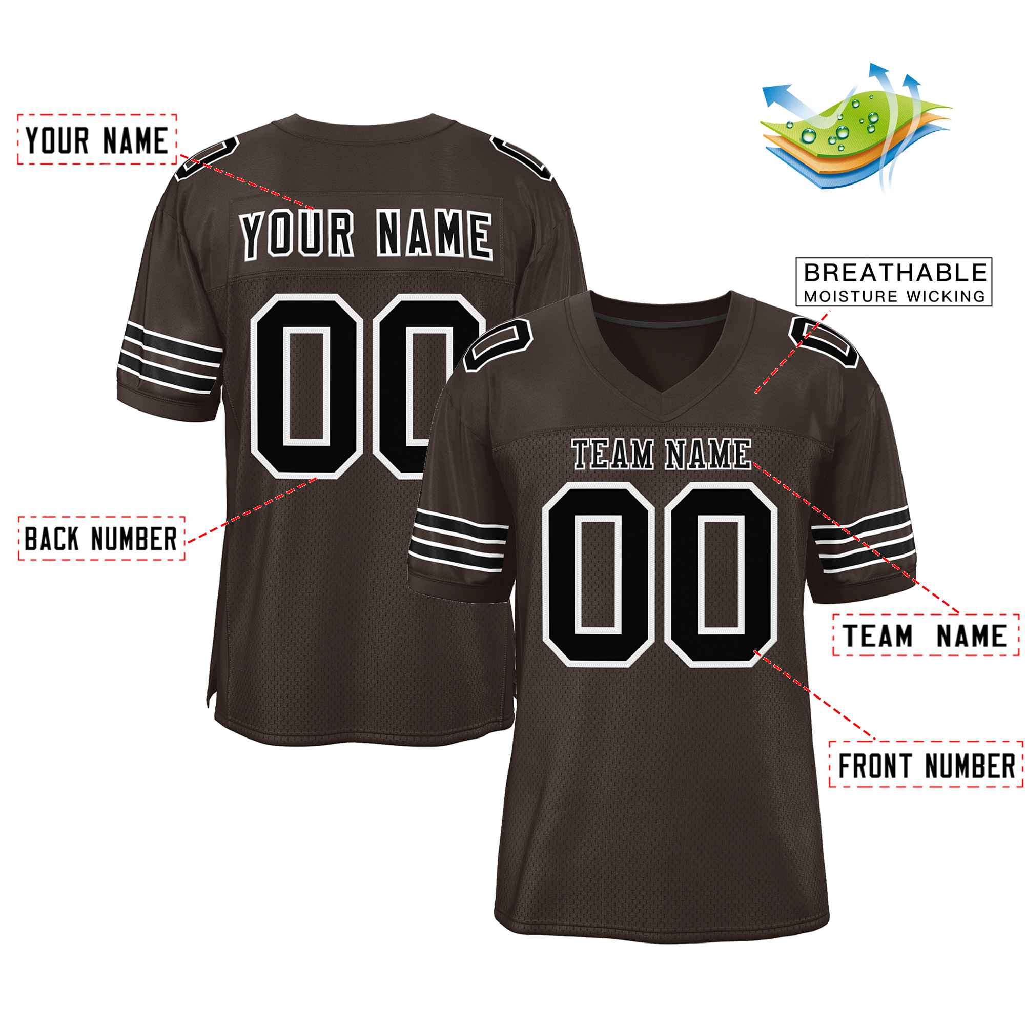 Custom Brown Black-White Classic Style Authentic Football Jersey